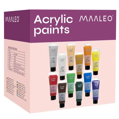 Zestaw farb akrylowych oferuje 12 wyrazistych i kolorowych odcieni, które pozwolą rozwinąć Twoją kreatywność do maksimum. Farby można mieszać, tworząc unikalną paletę tonów, odpowiednią dla profesjonalnych artystów, entuzjastów i dzieci. Dzięki przezroczystym tubkom o pojemności 100 ml aplikacja jest wygodna i precyzyjna, a farby po wyschnięciu są wodoodporne i trwałe. Z tymi farbami możesz bezpiecznie tworzyć w domu – są nietoksyczne, bezwonne i odpowiednie dla dzieci powyżej 3 roku życia.