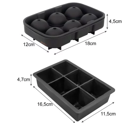 Odkryj zabawny i praktyczny sposób na przygotowanie lodu do napojów. Zestaw silikonowych form pozwala stworzyć idealnie okrągłe kule oraz duże kwadratowe kostki. Dzięki ściśle przylegającym pokrywkom nie dojdzie do rozlania płynów, a łatwo się je napełnia za pomocą leja. Formy są wielokrotnego użytku i odporne na niskie temperatury.