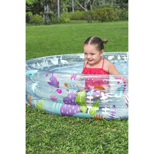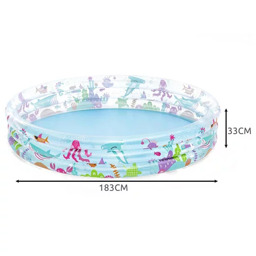 Zafunduj dzieciom orzeźwienie i mnóstwo zabawy w gorące dni z praktycznym basenem dmuchanym. Dzięki przestronnej okrągłej konstrukcji oferuje wystarczająco dużo miejsca do zabaw wodnych w ogrodzie i na tarasie. Trzy osobno dmuchane pierścienie zwiększają stabilność i ułatwiają przygotowanie do użycia. Basen można wykorzystać nie tylko z wodą, ale także jako przestrzeń do zabawy z piłkami lub zabawkami.