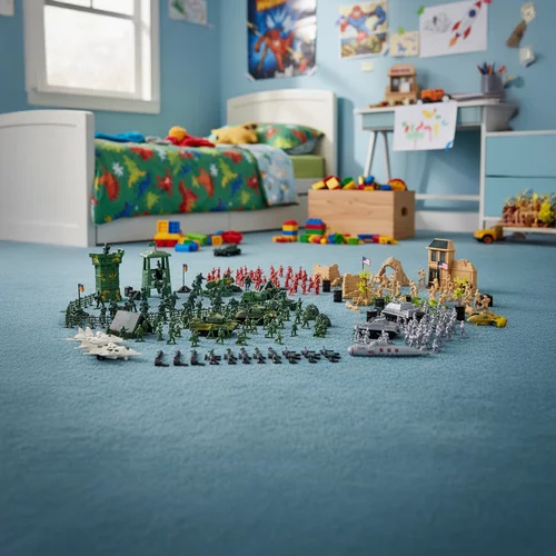 • Kompletny zestaw – 300 elementów obejmujących żołnierzy, czołgi, samoloty, broń i budynki