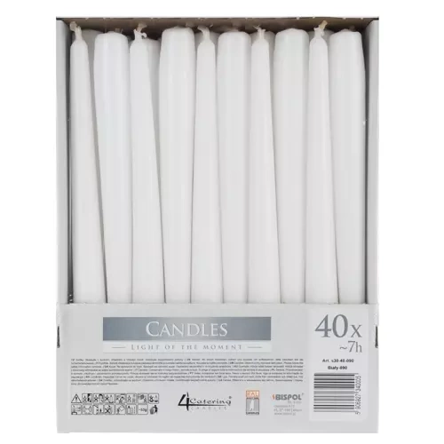Elegancka i ponadczasowa stożkowa świeca o średnicy 2,3 cm i wysokości 24,5 cm, która przyciąga uwagę swoim dużym rozmiarem i długim czasem palenia do 7 godzin. Idealna do latarni, świątecznych aranżacji, wnętrz kościołów lub na uroczystości takie jak chrzty, wesela czy inne specjalne wydarzenia.