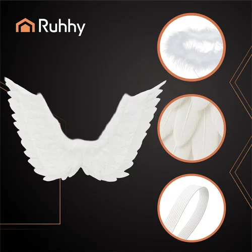 Zachwycające śnieżnobiałe skrzydła z aurą na diademie są idealne do kostiumów anioła, wróżki, elfa lub postaci fantasy. Puchowa powierzchnia nadaje realistyczny i eteryczny wygląd, który wygląda świetnie na żywo i na zdjęciach. Zestaw nadaje się na Halloween, imprezy kostiumowe, sesje zdjęciowe, przedstawienia oraz do użytku dekoracyjnego, gdy zawieszone w pomieszczeniu, na krześle lub jako część sceny tworzy delikatną i anielską atmosferę.