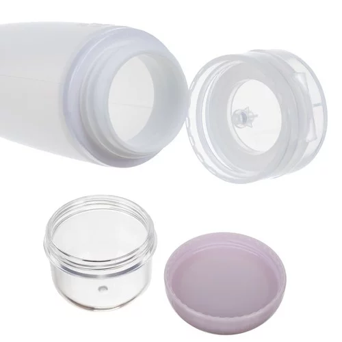 Praktyczny zestaw umożliwia posiadanie całej kosmetyki w podróży w jednym miejscu i bezpiecznie przechowanej. Elastyczne butelki i pojemniki zapobiegają wyciekaniu kosmetyków i chronią bagaż przed zanieczyszczeniem. Odpowiednia pojemność i kompatybilność z przepisami dotyczącymi bagażu podręcznego ułatwiają podróżowanie samolotem, podczas gdy przezroczysta kosmetyczka i stylowy design łączą funkcjonalność z estetyką.