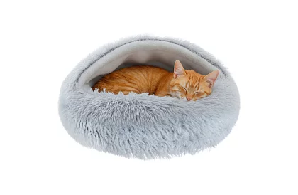 Miękkie i przytulne miejsce do odpoczynku zapewni zwierzakowi maksymalny komfort i poczucie bezpieczeństwa. Dzięki pluszowej powierzchni i puszystemu wypełnieniu zwierzę będzie mogło cieszyć się spokojnym snem bez nacisku na stawy. Daszek tworzy zamkniętą przestrzeń, która wywołuje poczucie legowiska i pomaga zmniejszyć stres. Antypoślizgowe dno zapewnia stabilność na każdej powierzchni, a elegancki design naturalnie wpasowuje się w wnętrze.