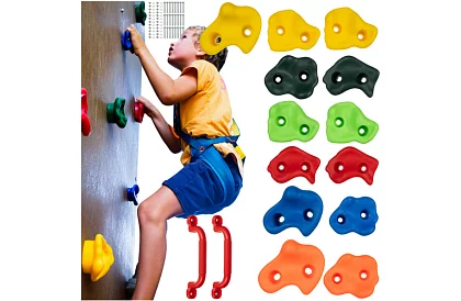 Kolorowe uchwyty wspinaczkowe rozwijają siłę, zwinność i koordynację ruchową dziecka, wspierają myślenie logiczne i oferują bezpieczną zabawę w domu i w ogrodzie. Dzięki wytrzymałemu materiałowi i stabilności UV są odpowiednie do wnętrz i na zewnątrz, łatwo się montują i zapewniają bezpieczny chwyt.