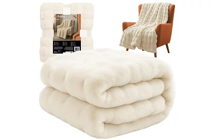 Miękkie objęcie i przyjemne ciepło na chwile relaksu w domu i na działce. Miękka powierzchnia z efektem sztucznego futra w połączeniu z delikatnym pluszem tworzy doskonały komfort podczas czytania, oglądania filmu lub relaksu. Elegancki biały odcień łatwo wpasuje się w nowoczesne i klasyczne wnętrze i posłuży nie tylko jako koc, ale także jako stylowy narzut.