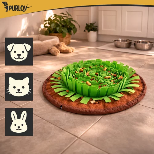 Zamień zwykłe karmienie w zabawną i uspokajającą aktywność. Mata węchowa pomaga spowolnić połykanie, stymuluje naturalne instynkty i zajmie twojego pupila na długie minuty. Idealne rozwiązanie dla psów, które się nudzą, połykały jedzenie lub potrzebują stymulacji umysłowej.