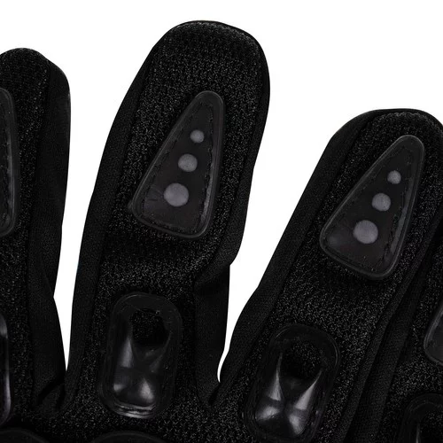 Rękawice motocyklowe z wytrzymałego nylonu zapewniają maksymalną ochronę rąk podczas jazdy i są odporne na ścieranie oraz uszkodzenia. Wzmocnione palce i dłonie zapewniają wytrzymałość i długą żywotność tam, gdzie rękawice są najbardziej narażone na zużycie. Ergonomiczny design i antypoślizgowe panele umożliwiają precyzyjny chwyt kierownicy i bezpieczną kontrolę pojazdu. Regulowane mankiety zapobiegają dostawaniu się brudu i zapewniają komfortowe dopasowanie rękawic.