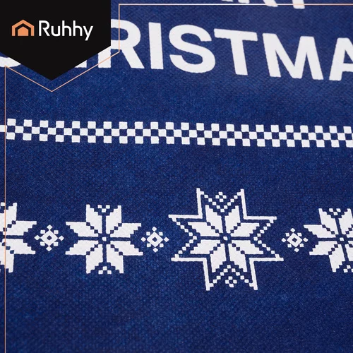 • Wzór bożonarodzeniowy: białe i złote motywy reniferów, dzwonków, gałązek i gwiazd z napisem Wesołych Świąt