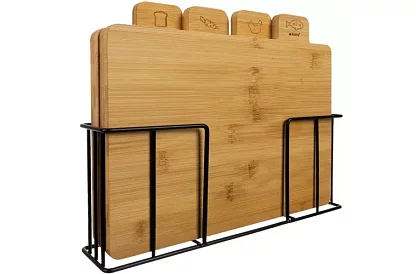 Praktyczny zestaw bambusowych desek do krojenia wprowadza porządek, higienę i wygodę do codziennego przygotowywania posiłków. Każda deska ma własne przeznaczenie, co pomaga zapobiegać krzyżowej kontaminacji i utrzymać kuchnię w czystości. Dzięki kompaktowemu stojakowi deski są zawsze pod ręką i nie zajmują zbędnego miejsca. Naturalne drewno bambusowe jest odporne, antybakteryjne i nadaje się nie tylko do krojenia, ale także do serwowania przekąsek.