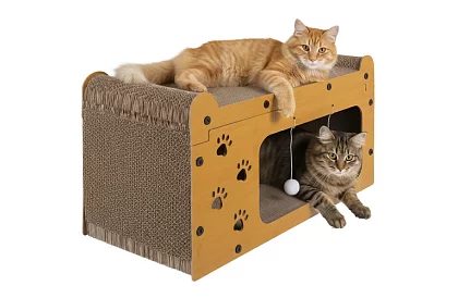 Praktyczne drapak z domkiem i legowiskiem tworzy idealną przestrzeń do codziennego życia kota. Łączy miejsce do drapania, odpoczynku i zabawy w jednym kompaktowym rozwiązaniu. Naturalna falista tektura o wysokiej odporności zaspokaja naturalny instynkt drapania i pomaga chronić meble przed uszkodzeniami. Stabilna konstrukcja z wytrzymałej płyty HDF zapewnia bezpieczeństwo nawet podczas aktywnej zabawy.
