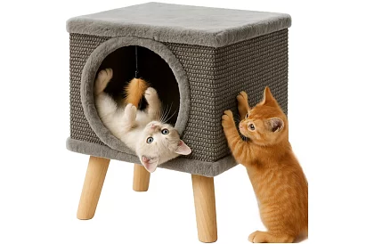 Praktyczne rozwiązanie dla każdego kota łączy drapak i przytulne legowisko w jednym. Solidna konstrukcja i wysokiej jakości materiały zapewniają stabilność nawet podczas intensywnej zabawy, podczas gdy miękki wnętrze oferuje idealne miejsce do odpoczynku. Naturalny sizal umożliwia bezpieczne ostrzenie pazurów i pomaga chronić meble. Dzięki kompaktowym wymiarom i nowoczesnemu wyglądowi doskonale wpasuje się w każde wnętrze.