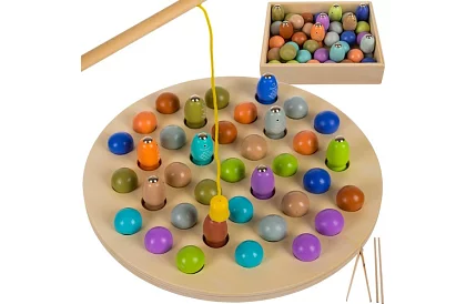 Rozwijaj wyobraźnię dzieci i zdolności manualne dzięki tej zabawnej grze magnetycznej. Dzieci uczą się koncentracji, myślenia logicznego i pamięci wzrokowej, łowiąc kolorowe rybki za pomocą wędki z magnesem. Solidne drewniane wykonanie zapewnia długą żywotność i wiele godzin zabawy.