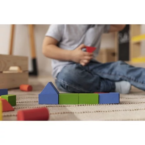 • Wytrzymałe materiały – drewniane klocki wytrzymują długie godziny zabawy i bezpiecznie posłużą także kolejnym pokoleniom