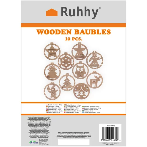 • Zestaw 10 drewnianych ozdób z motywami świątecznymi