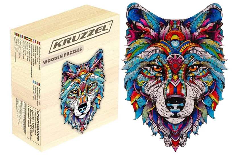 MOTYW WILKA – Po ułożeniu puzzli powstaje kolorowy wilk składający się z różnych wzorów i grafik. Intensywne kolory poszczególnych elementów przyciągają uwagę i uczą precyzji oraz cierpliwości.