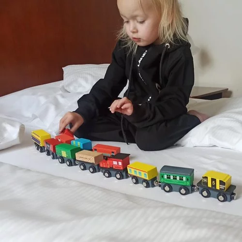 Zabawna i edukacyjna zabawka, która zajmie dzieci na długie godziny i jednocześnie nauczy je cennych umiejętności. Gra z drewnianym pociągiem stymuluje wzrok, pobudza wyobraźnię i rozwija myślenie przestrzenne, idealna do kreatywnej zabawy w domu i z rówieśnikami.