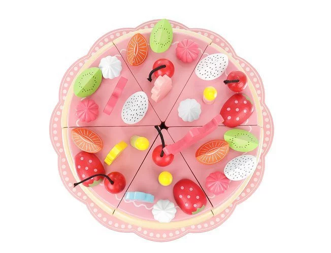 Ten drewniany zestaw tortu urodzinowego oferuje nieskończoną kreatywną zabawę dla małych i większych dzieci. Możesz ozdobić tort według własnych pomysłów, dodawać owoce, beziki i świeczki, które trzymają się dzięki magnesom. Gotowy tort można „pokroić prawdziwym nożem” i serwować na talerzach, co ćwiczy drobne umiejętności motoryczne i przygotowuje dzieci do używania prawdziwego noża. Kolorowe elementy przyciągają uwagę i umożliwiają godziny zabawy i nauki.