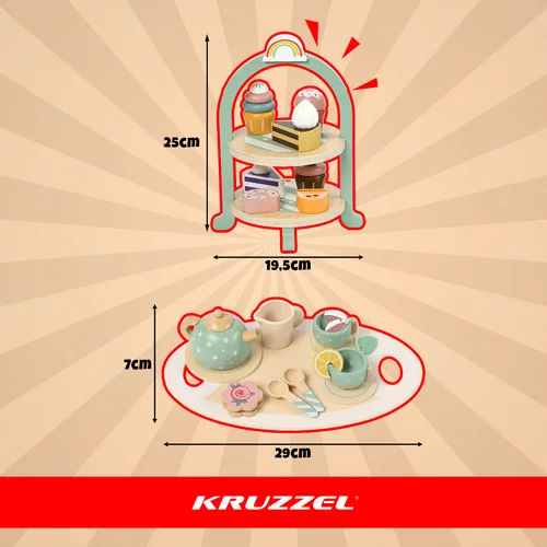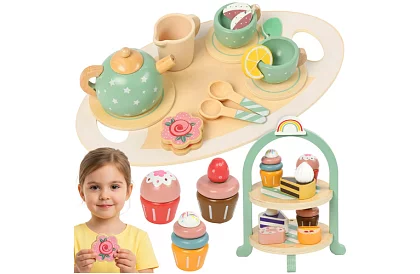 Słodki świat fantazji pełen herbacianych spotkań, urodzinowych przyjęć i kawowych gier. Bogaty drewniany zestaw z stojakiem na desery rozwija kreatywność, małą motorykę i umiejętności społeczne, przynosząc dzieciom radość z zabawy bez ekranów. Pastelowe kolory, realistyczne akcesoria i wysokiej jakości drewniane wykonanie zapewniają bezpieczną i długotrwałą zabawę w domu i w przedszkolu.