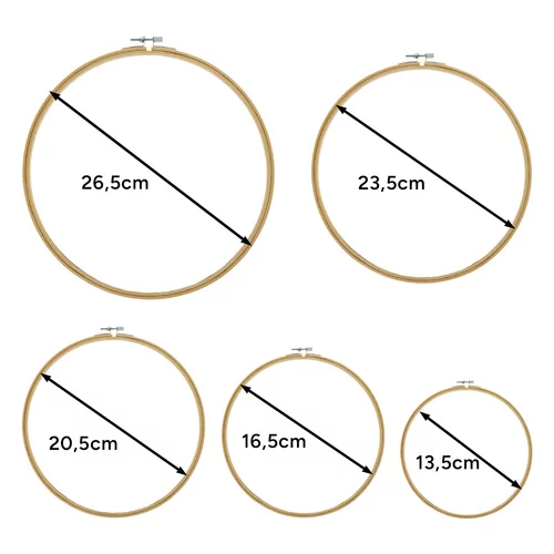 • Obręcze do haftu: 11,3 cm / 14,5 cm / 18,5 cm / 22,5 cm / 25,6 cm
