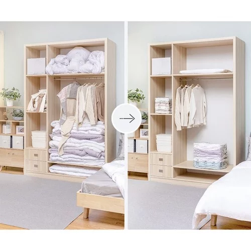 Worek próżniowy umożliwia maksymalne oszczędne przechowywanie odzieży, pościeli, koców lub ręczników. Po odessaniu powietrza zwykłym odkurzaczem jego objętość zmniejsza się nawet o 80 %, co znacznie oszczędza miejsce w szafach, walizkach lub podczas przeprowadzki. Do worka wygodnie zmieści się na przykład 4 pikowane koce.