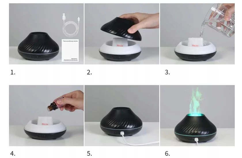 Nawilżacz powietrza wzmocniony efektem ognia w przyjemnym otoczeniu tworzy kojącą atmosferę! Wprowadza w stan relaksu ciała i umysłu. Nawilżacz powietrza idealny do stosowania przy przeziębieniu i kaszlu. Aromaterapia, która jest przyjemna i poprawia samopoczucie fizyczne i psychiczne, słynie z terapeutycznego działania na ciało i umysł, dlatego wystarczy umieścić 2–3 krople ulubionego olejku eterycznego w dyfuzorze i pozwolić mu zadziałać.