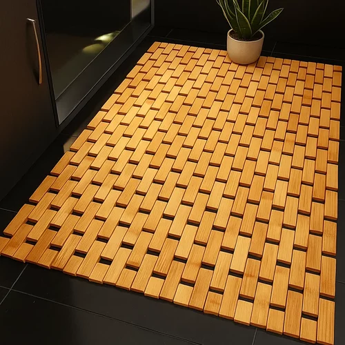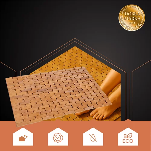 Elegancka i praktyczna matka przed wanną lub w kabinie prysznicowej łączy naturalny wygląd z funkcjonalnością. Wykonana z bambusowych lameli, jest wodoodporna, szybko schnie i zapobiega gromadzeniu się wilgoci i pleśni. Antypoślizgowe podkładki zapewniają bezpieczne użytkowanie nawet na mokrej powierzchni.