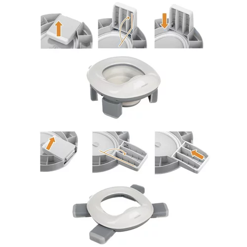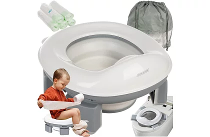 Praktyczny składany nocnik łączy nocnik i deskę toaletową dla wygodnego użytkowania w domu i w podróży. Kompaktowy składany design umożliwia łatwy transport i przechowywanie, w złożonym stanie zajmuje minimalną ilość miejsca. Wyjmowany elastyczny pojemnik i możliwość użycia plastikowych worków zapewniają higieniczne i wygodne użytkowanie. Antypoślizgowe nóżki i solidna konstrukcja zapewniają stabilność na każdej powierzchni i zwiększają bezpieczeństwo dziecka. W zestawie znajduje się 100 worków do łatwego i higienicznego użycia.