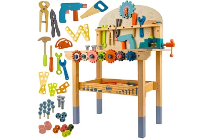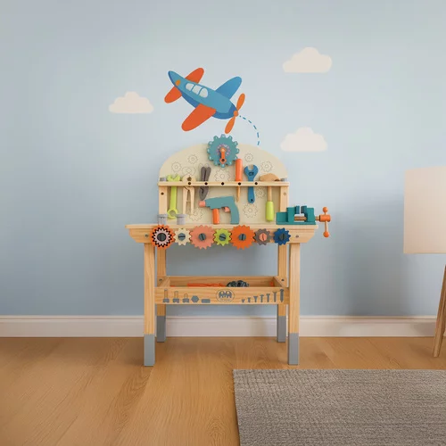 Drewniana warsztat dla dzieci łączy zabawę i edukację, idealna dla małych majsterkowiczów od 3 roku…