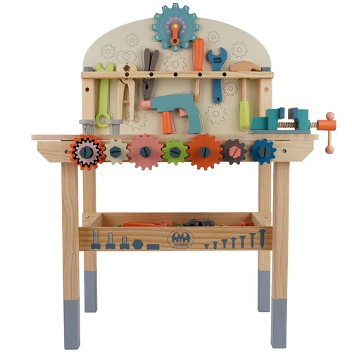 Bezpieczny i zabawny drewniany warsztat zapewnia godziny kreatywnej zabawy. Zaokrąglone krawędzie i nietoksyczne materiały zapewniają bezpieczeństwo nawet dla najmniejszych dzieci. Wytrzymałe narzędzia i solidna konstrukcja umożliwiają intensywną zabawę bez ryzyka uszkodzenia. Warsztat rozwija umiejętności manualne, koordynację i wyobraźnię, a także oferuje przestrzeń do wkręcania, obracania imadłem i innych twórczych aktywności. Idealny pomysł na prezent dla domu, przedszkola lub placu zabaw.