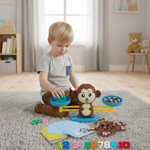 • Liczba elementów: według zestawu (waga, małpki, kartoniki, cyfry)