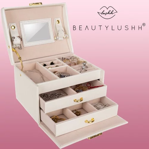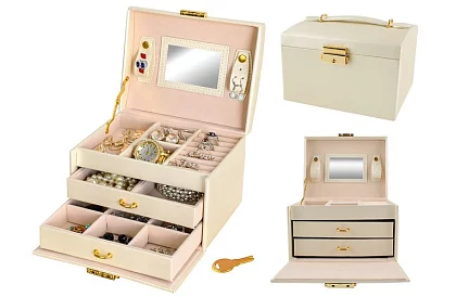 • Przestronna: 20 przegródek, 3 wysuwane szuflady i rolki do łatwego uporządkowania biżuterii