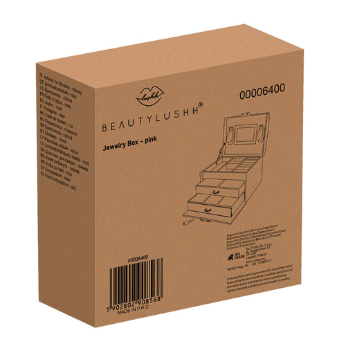• Przestronna: 20 przegródek, 3 szuflady i cylindryczne wnęki do perfekcyjnego uporządkowania biżuterii