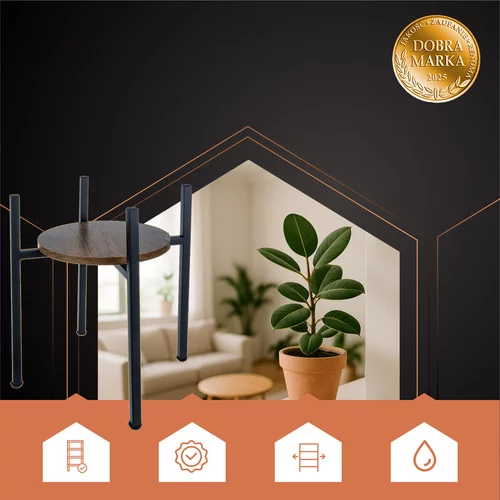 Stylowy stojak na kwiaty w stylu loftowym oferuje praktyczne i estetyczne rozwiązanie do efektownego wyeksponowania roślin w salonie, kuchni, sypialni lub na balkonie. Metalowa konstrukcja zapewnia stabilność i odporność, minimalistyczny design pasuje do nowoczesnych i klasycznych wnętrz. Wyrównujące nóżki ochronne chronią podłogę przed zarysowaniami i umożliwiają idealne wyważenie stojaka nawet na nierównym podłożu.