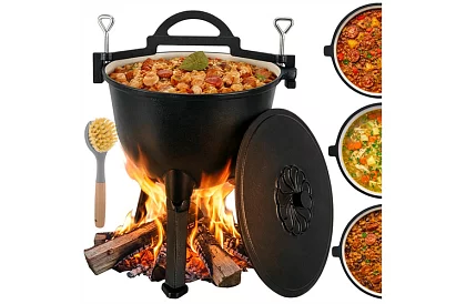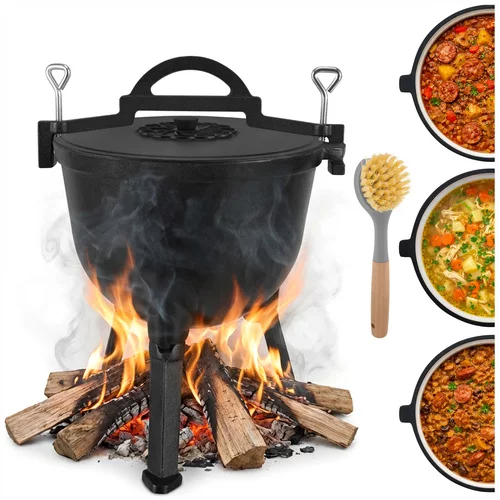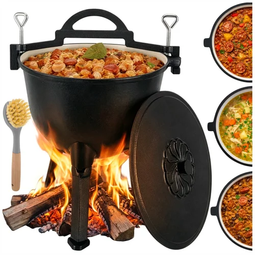 Gotowanie na ogniu może być łatwe i bezpieczne z żeliwnym garnkiem o pojemności 10 litrów, który oferuje równomierne rozłożenie ciepła i wysoką odporność na temperatury. Emaliowane wnętrze ułatwia czyszczenie i eliminuje konieczność impregnacji po każdym użyciu. Idealny do przygotowywania sycących potraw na obozie, w kominku lub w ogrodzie, garnek łączy funkcjonalność z wygodną obsługą dzięki zdejmowanym nogom i praktycznemu uchwytowi.