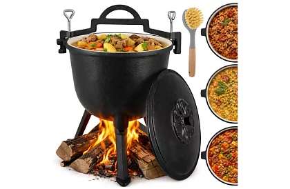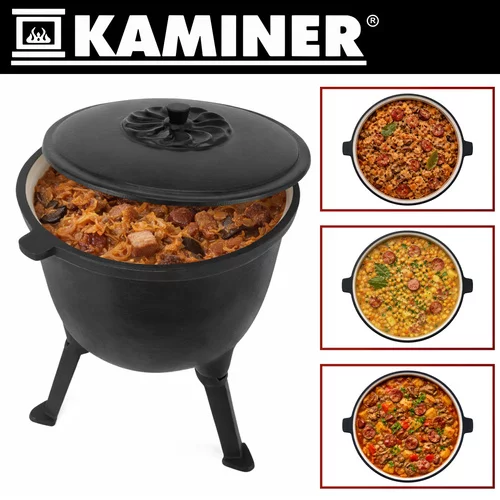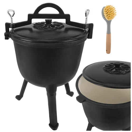 Gotowanie na ogniu jest teraz łatwe i bezpieczne z żeliwnym kociołkiem o pojemności 8 litrów, który oferuje równomierne rozłożenie ciepła i wysoką odporność na wysokie temperatury. Emaliowane wnętrze ułatwia czyszczenie i eliminuje konieczność impregnacji po każdym użyciu. Idealny do przygotowywania sycących potraw na obozie, w kominku lub w ogrodzie, kociołek umożliwia wygodne manewrowanie dzięki odłączanym nogom i praktycznemu uchwytowi.