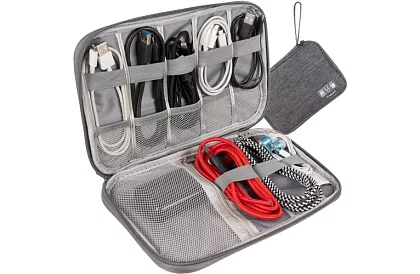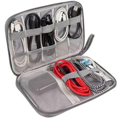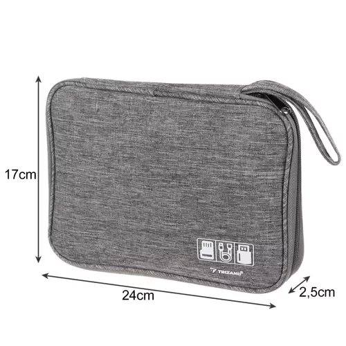 Organizer umożliwia przejrzyste i bezpieczne przechowywanie kabli, ładowarek i drobnej elektroniki. Dzięki wodoodpornemu materiałowi twoje rzeczy są chronione przed wilgocią i przypadkowym zalaniem. Kompaktowe wymiary i praktyczny uchwyt do przenoszenia ułatwiają podróżowanie, do biura lub na spotkania, a duża liczba przegródek i gumek umożliwia doskonałe sortowanie i łatwy dostęp do elektroniki. Zamek zapewnia estetyczne i bezpieczne zamknięcie i eliminuje bałagan spowodowany ilością kabli.