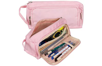 Praktyczny piórnik z materiału oxford oferuje wysoką odporność, wytrzymałość i funkcjonalność, idealny dla uczniów i profesjonalistów. Boczne uchwyt umożliwia wygodne noszenie w ręce lub zawieszenie na haczyku. Duża główna przegroda z sekcjami i wewnętrznymi kieszeniami zapewnia łatwą organizację przyborów szkolnych lub biurowych. Siatkowa przegroda, przednia klapa z zamkiem i gumki na długopisy zapewniają przejrzystość i szybki dostęp do najczęściej używanych rzeczy.