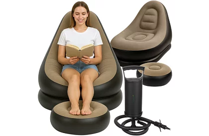 Nadmuchiwane krzesło zapewnia komfortowe i wygodne siedzenie w domu i na zewnątrz. Mocna i trwała konstrukcja z PVC pokrytego miękkim materiałem imitującym aksamit zapewnia długą żywotność i odporność na przypadkowe przebicie. Ergonomiczny kształt i miękkie siedzisko umożliwiają wygodny relaks, oglądanie filmów lub czytanie, a dzięki maksymalnej nośności 120 kg jest odpowiednie dla dorosłych i dzieci.