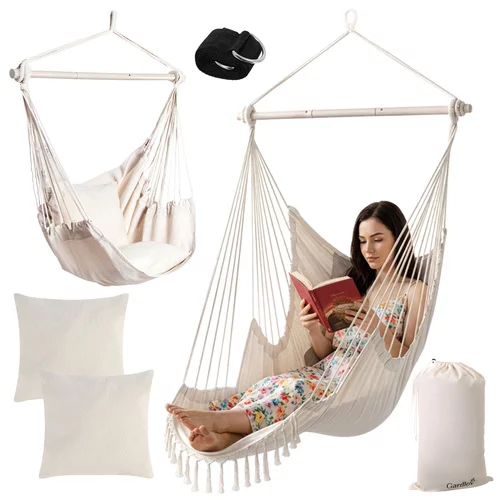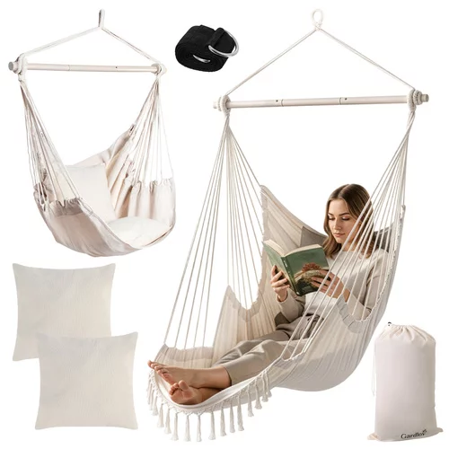 Fotel wiszący BOHO 2 w 1 zapewnia maksymalny komfort i stylowy wygląd w ogrodzie, na balkonie i w pomieszczeniach. Przestronna konstrukcja, wytrzymała tkanina bawełniana i stabilna konstrukcja tworzą idealne miejsce do relaksu, czytania i odpoczynku po ciężkim dniu. Dzięki możliwości wykorzystania jako fotel i hamak zapewnia elastyczność w zależności od aktualnych potrzeb. Dwa miękkie poduszki i solidny metalowy pręt zapewniają komfort i bezpieczne użytkowanie bez kompromisów.