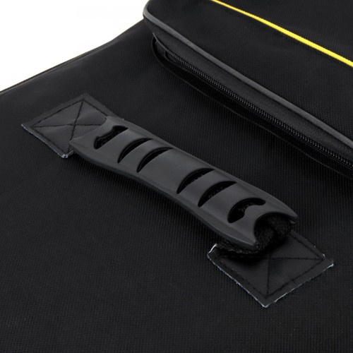 Futerał na gitarę to praktyczne i trwałe akcesorium dla uczniów szkół muzycznych i profesjonalnych muzyków. Dzięki regulowanym paskom, wysokość można dostosować do dzieci i dorosłych, zapewniając wygodne przenoszenie nawet na dłuższych dystansach. Futerał jest odporny na uszkodzenia i chroni gitarę podczas codziennych podróży. Posiada dwie kieszenie - górną na mniejsze akcesoria, takie jak kapo czy kostki, oraz dolną na format A4, w której można łatwo przechowywać nuty i drobne przedmioty. Futerał jest odpowiedni dla gitar o rozmiarze do 41 cali, a dolna część jest wzmocniona, aby bezpiecznie przenosić sprzęt.