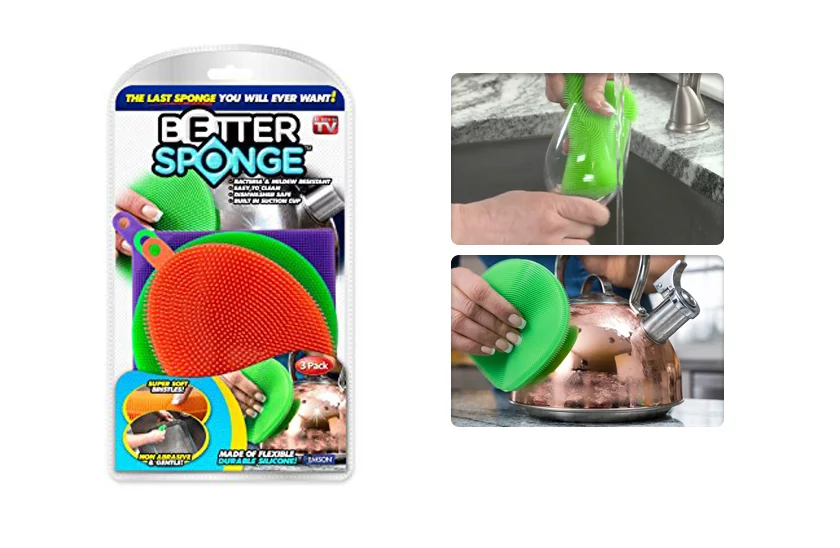 Zmywanie naczyń to praca, którą uwielbia mało osób. Polecamy owszem kupić dwustronną gąbkę silikonową, ułatwiającą pracę.