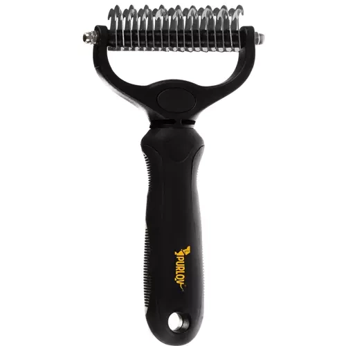 Ten grzebień jest idealny do wszystkich typów sierści i podszerstka. Dzięki dwustronnym zębom o różnym rozstawie łatwo usuniesz splątane włosy, podkreślisz sylwetkę psa i zmniejszysz ilość wypadających włosów na ubraniach i meblach. Użycie jest proste – wystarczy czesać sierść w kierunku wzrostu.