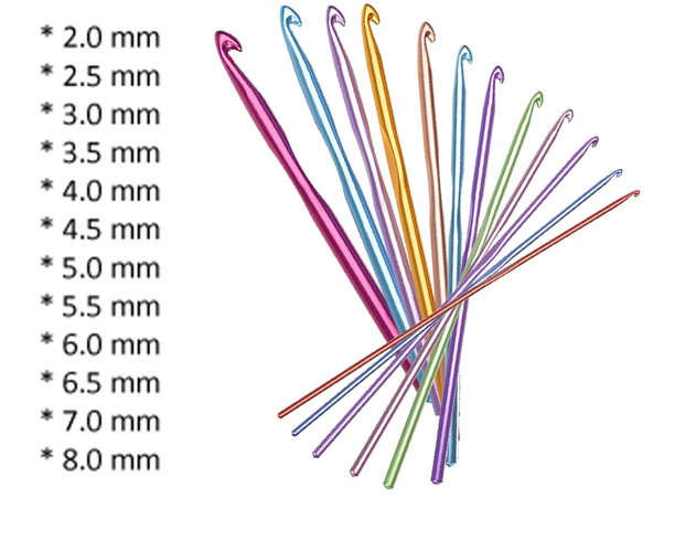 • Wymiary: rozmiary szydełek 2–8 mm (2, 2,5, 3, 3,5, 4, 4,5, 5, 5,5, 6, 6,5, 7, 8 mm)