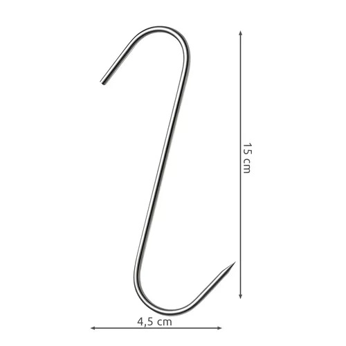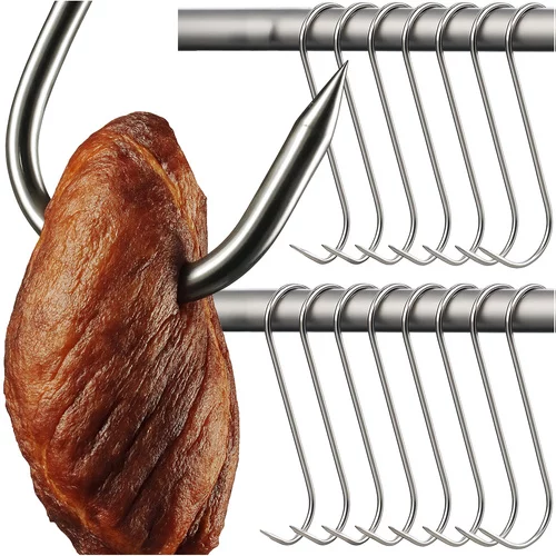 Zestaw haków ze stali nierdzewnej najwyższej jakości jest idealny do wędzenia mięsa i ryb. Odporne na rdzę, wysokie temperatury i wilgoć, zapewniają bezpieczne i niezawodne zawieszenie. Ostry czubek i kształt „S” umożliwiają łatwe przebicie mięsa i stabilne zawieszenie na pręcie wędzarni. Pakowane w praktycznym zestawie 15 sztuk, gotowe do natychmiastowego użycia.