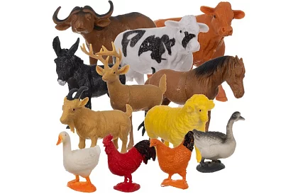 • Figurki: owca, koń, 2 rasy krów, koza, osioł, kura, kaczka, bawół, gęś, kogut, jeleń