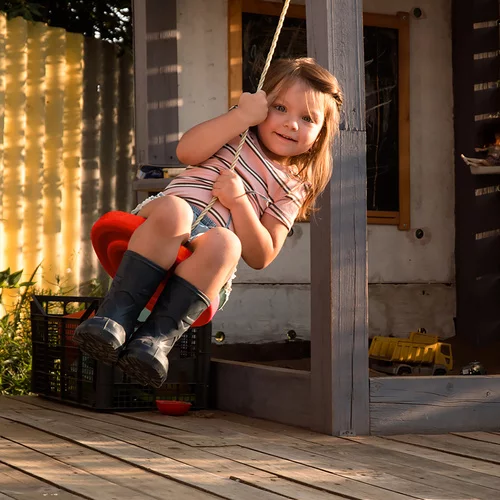 Przynosi radość z ruchu i wspiera równowagę, stabilność oraz zdrowy rozwój koordynacji. Mocna lina, metalowe elementy mocujące i wentylowany plastikowy dysk zapewniają bezpieczne i wygodne huśtanie w domu i na zewnątrz. Dzięki regulowanej długości liny łatwo dostosujesz wysokość przestrzeni w ogrodzie, na tarasie, balkonie i w pomieszczeniach. Wytrzymałe materiały chronią przed deszczem, wilgocią i promieniowaniem UV, dzięki czemu huśtawka na długo zachowuje swój wygląd i funkcjonalność.