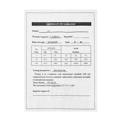 • Każdy klucz ma indywidualny certyfikat kalibracji i numer seryjny