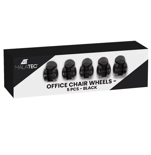 Uniwersalne zastosowanie – zestaw 5 kółek pasuje do większości biurowych, gamingowych, obrotowych i biurowych krzeseł z wrzecionem 11 mm. Instalacja jest łatwa i szybka – "kliknięciem".