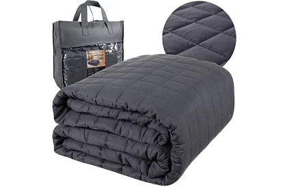 Zafunduj sobie głęboki relaks i lepszy sen dzięki równomiernemu naciskowi, który działa na całe ciało. Dwustronny design podwójny i precyzyjnie rozmieszczone obciążone kieszenie ze szklanymi koralikami tworzą przyjemne uczucie objęcia, które pomaga zmniejszyć napięcie mięśniowe, wspiera relaksację i przyczynia się do uspokojenia umysłu. Hojny rozmiar 200 × 220 cm zapewnia wystarczająco dużo miejsca do wygodnego użytkowania w sypialni i salonie. Kołdra nadaje się do codziennego odpoczynku oraz jako wsparcie podczas terapii sensorycznej. Eleganckie szare wykonanie dodatkowo działa jako stylowy dodatek do wnętrza.